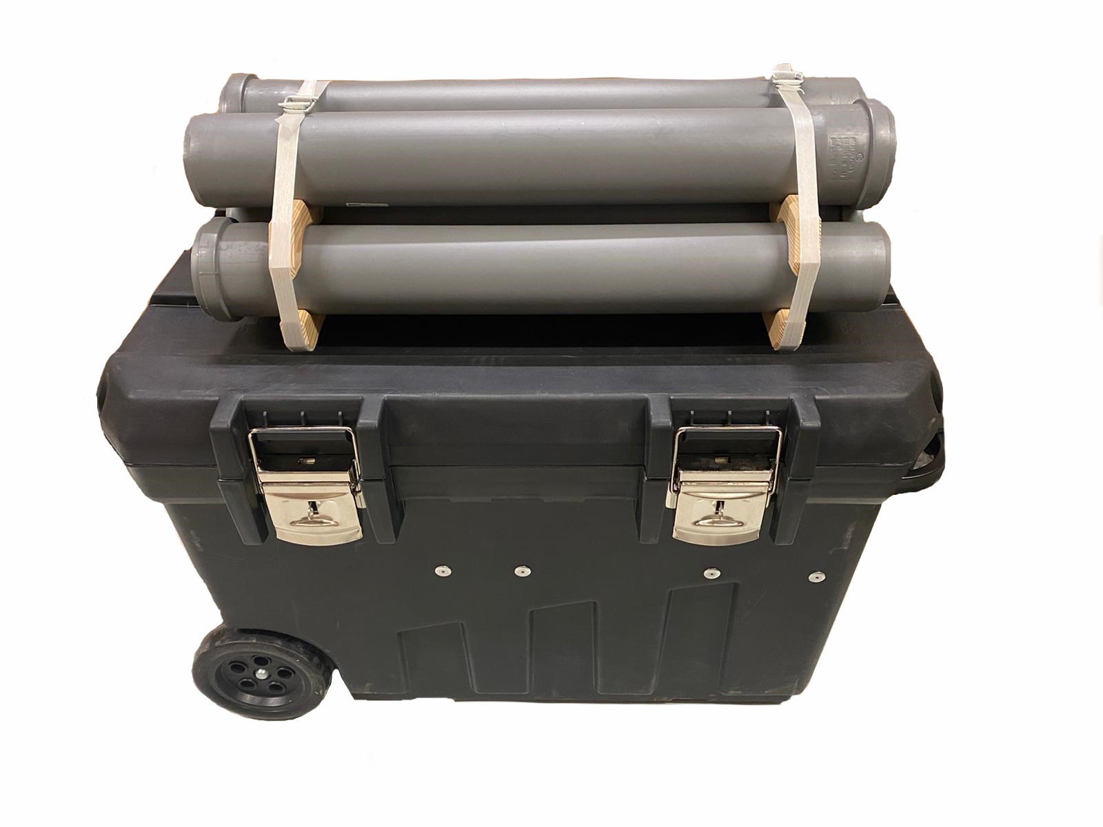- 2 Schnellspanngurte auf dem Deckel zur Befestigung z.B. der LaSi-Quick Micro Rohrsicherung