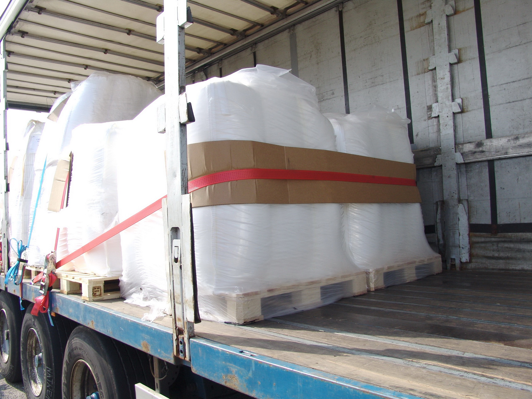 In conjunction with anti-slip mats between the palletized goods and the loading area, an even better retention force is achieved.