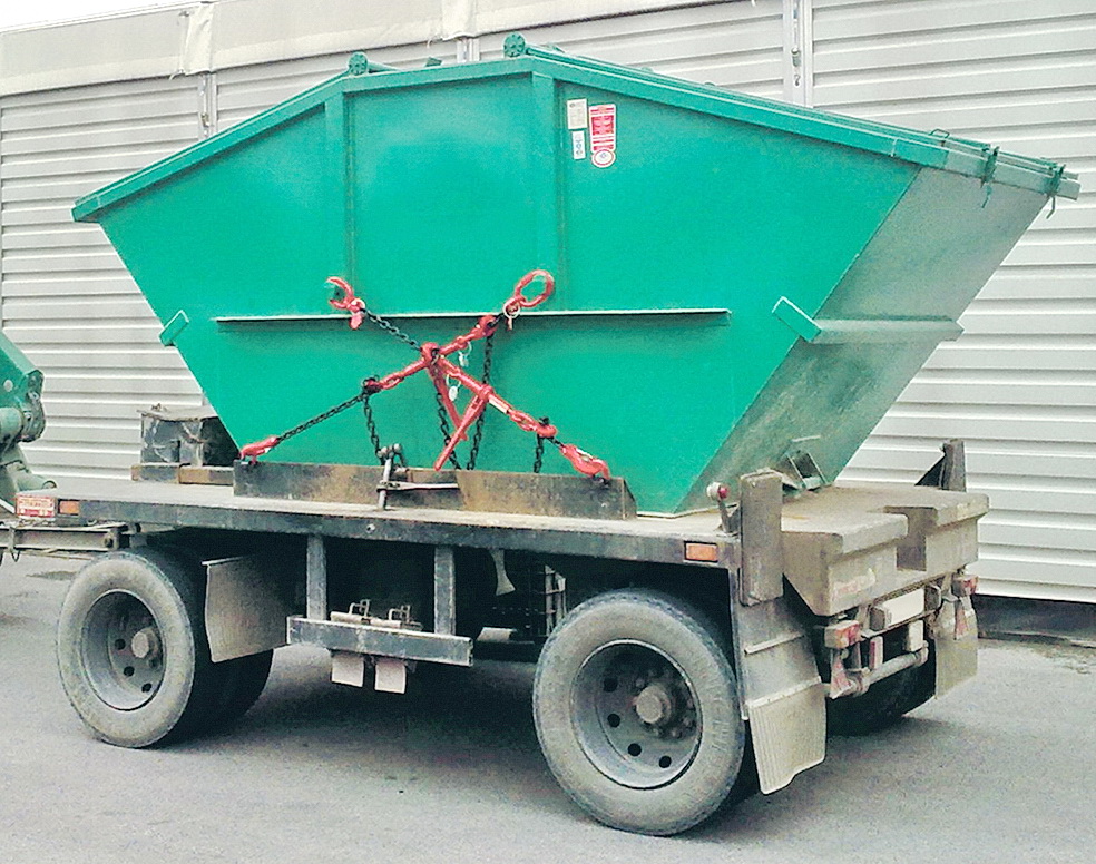 Lashing chain for securing containers (depositables) with oval suspension link, ratchet tensioner and safety load hook. Available in two lengths and different nominal thicknesses.